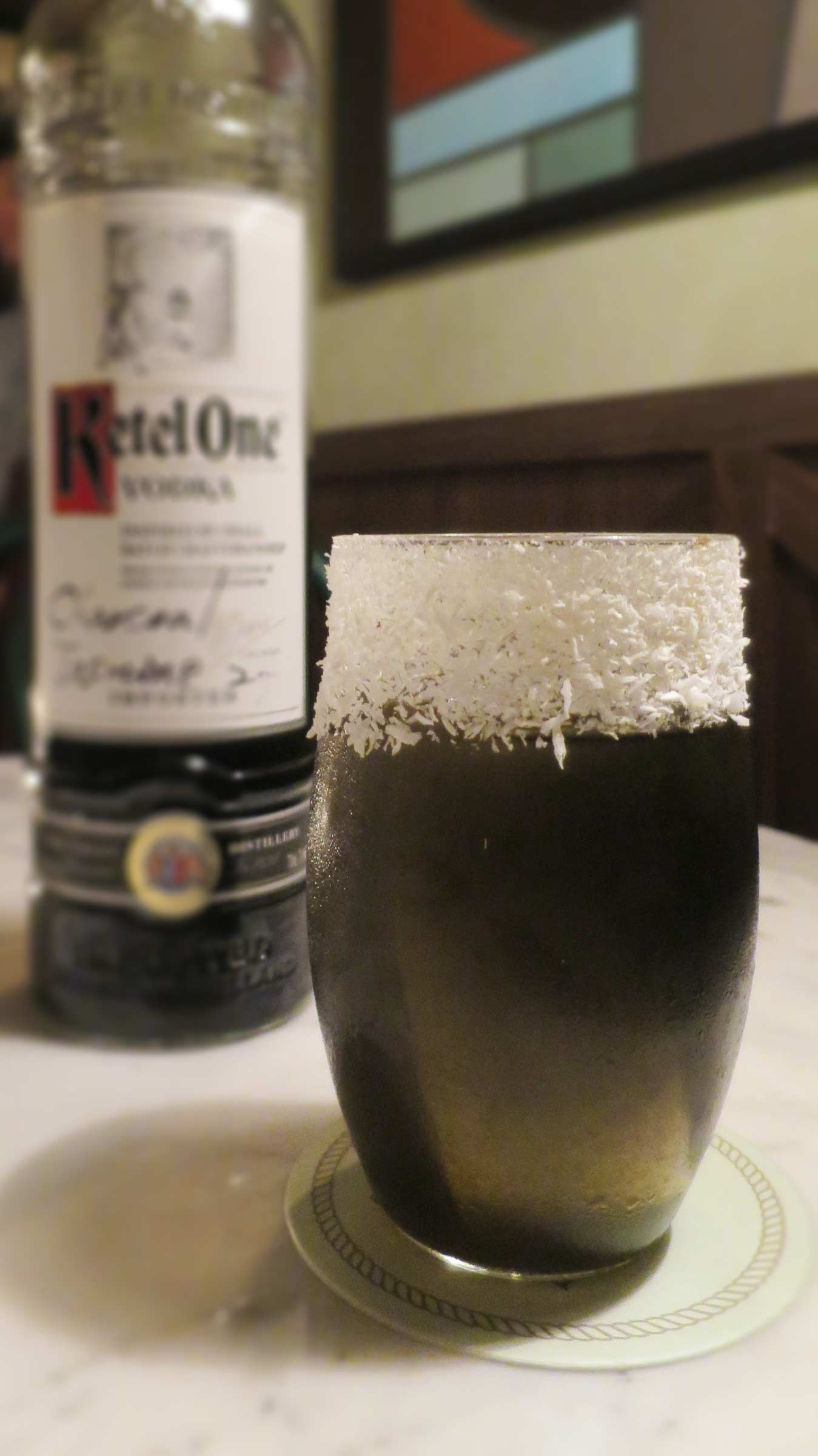 Diageo Reserve World Class Singapore 2016 winner Boo Jing Heng, and Thailand 2014 winner Neung Ronnaporn have come back with a Ketel One vodka based cocktail. One could never tell just by looking at it, though; the cocktail has an inky onyx colour, and is served with coconut shavings rimming the glass. The result brings to mind a sort of Southeast Asian Guinness.