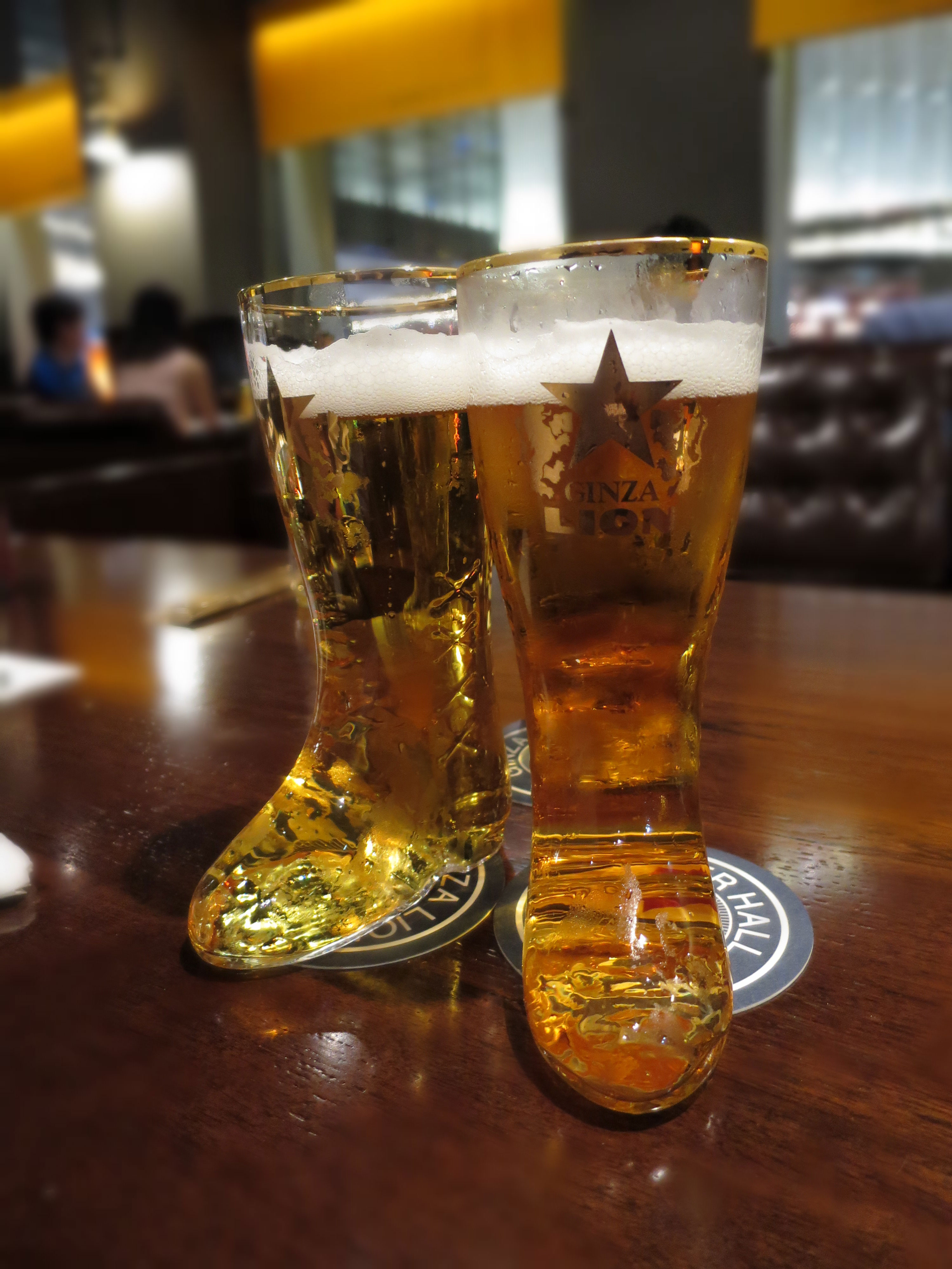 Two Sapporo weissbier. The beer was light and like what you’d expect from the wheat beer, fruity with a light, sour banana taste. It was pretty smooth and clean-tasting for… I’d go on, but I bet you’re really just wondering what’s up with those boots.